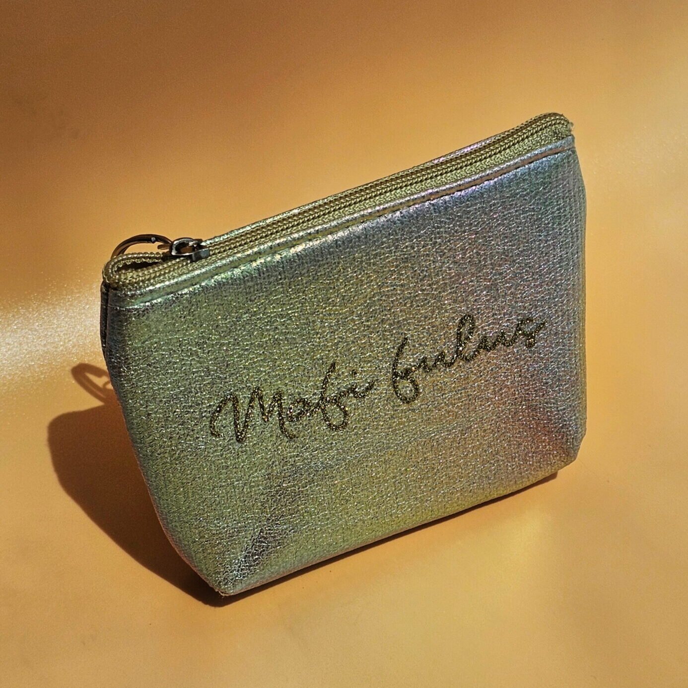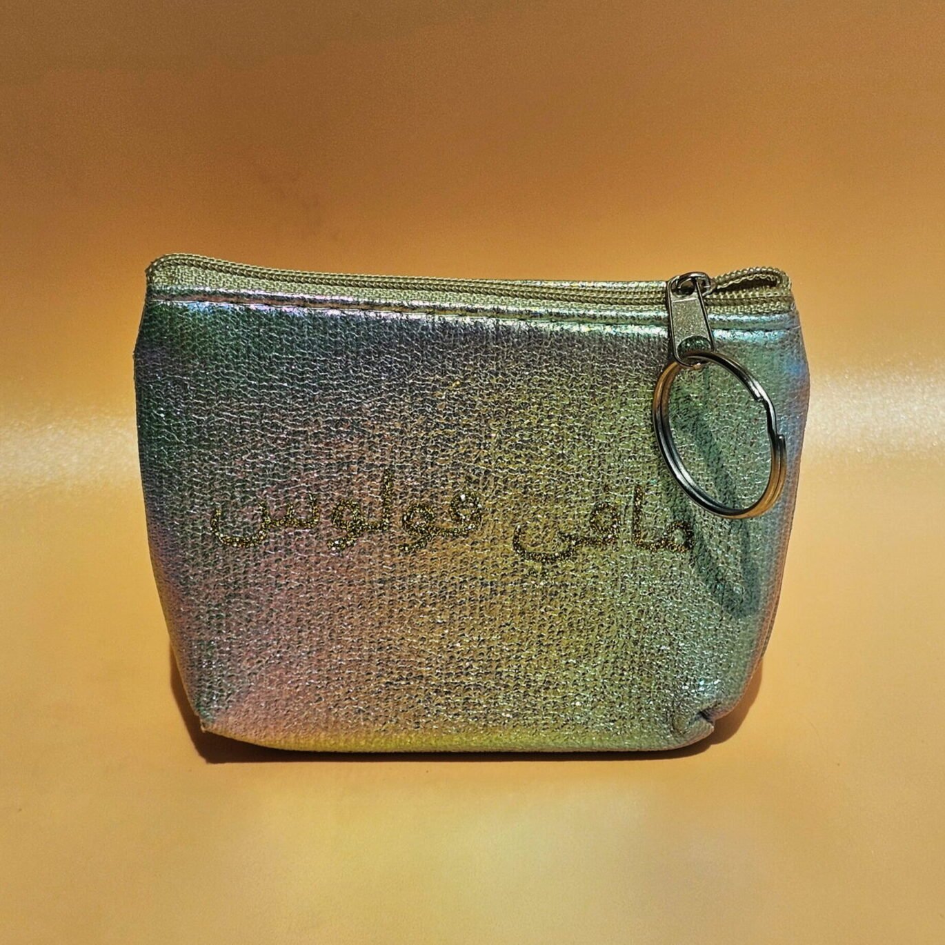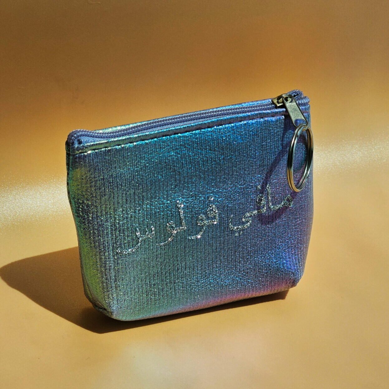 Designed in a structured, minimal form, this pouch features a secure zip closure and a small ring for convenient handling or attachment. Its compact size makes it ideal for slipping into any bag without adding bulk, while still keeping your essentials neatly in place. The textured finish catches light beautifully, creating a subtle sparkle in the sun while its appearance shifts depending on the lighting throughout the day. Suitable for daily errands, quick outings, or as a playful accessory with personality.