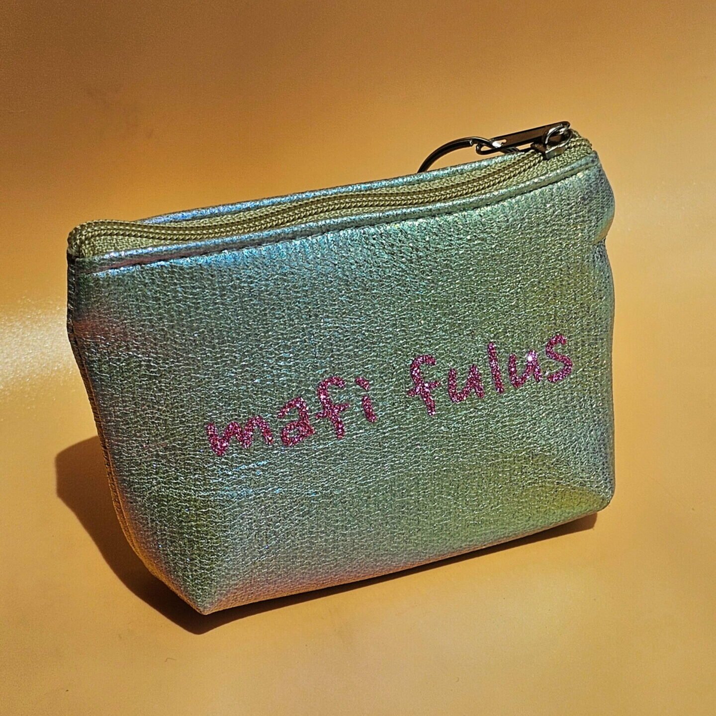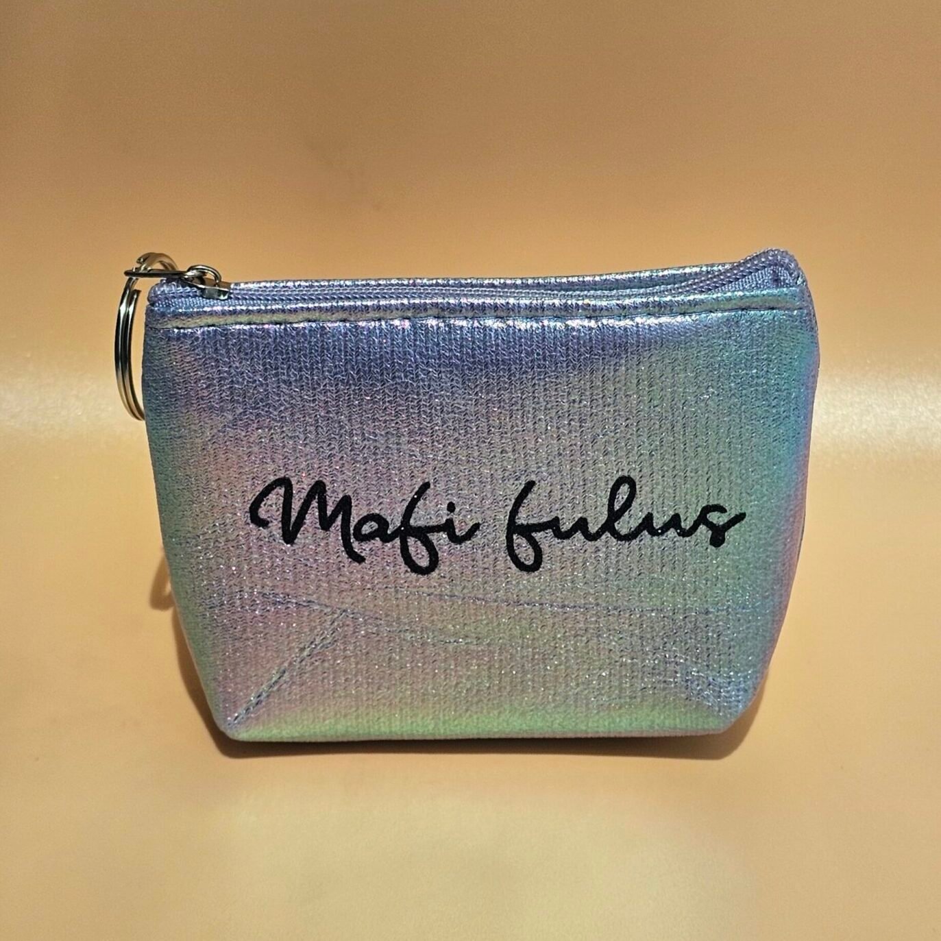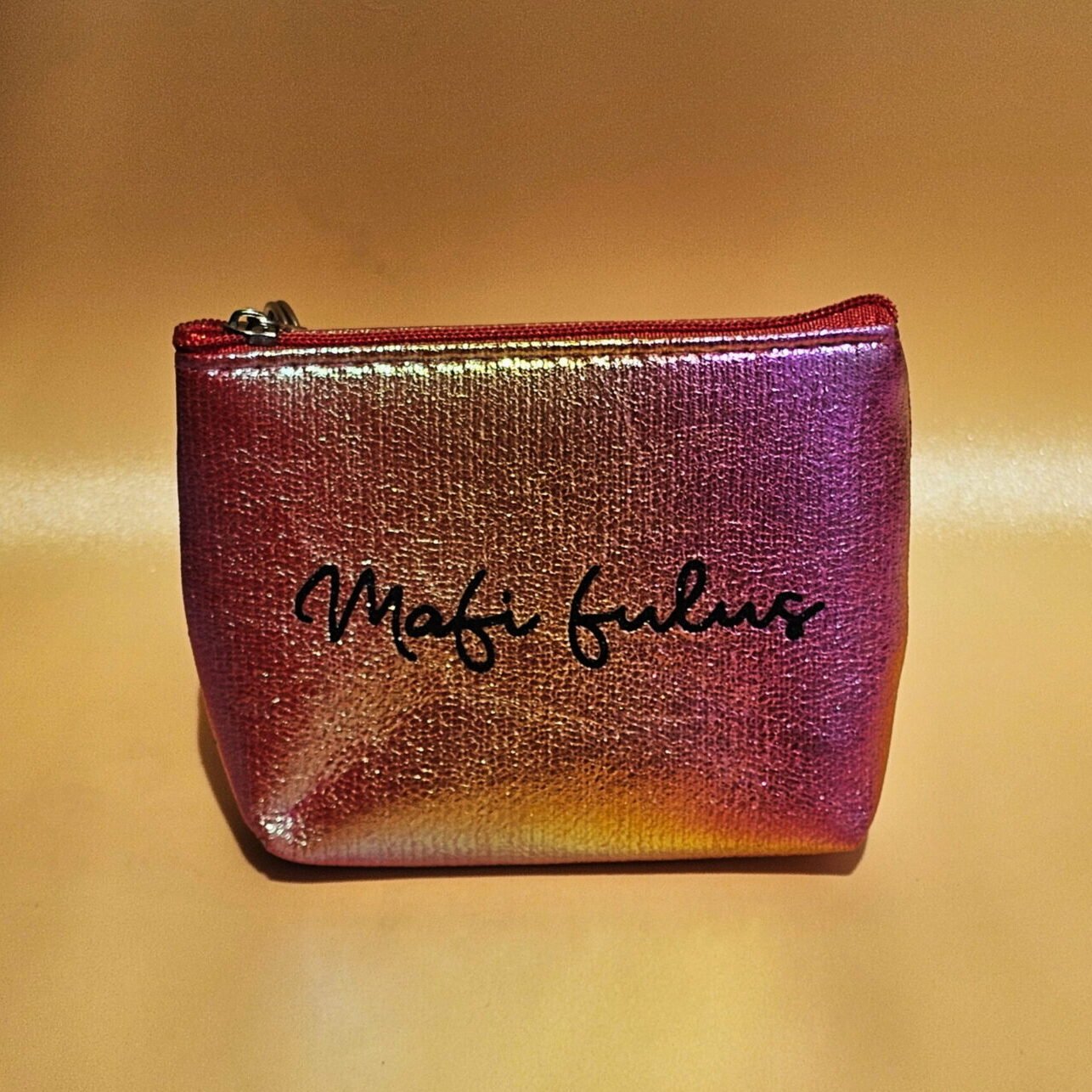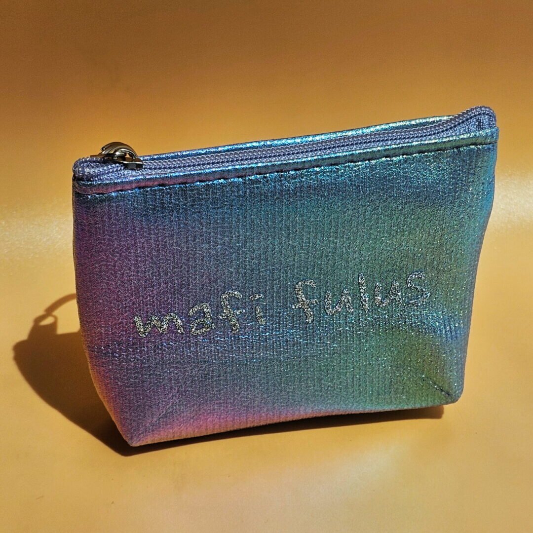 Designed in a structured, minimal form, this pouch features a secure zip closure and a small ring for convenient handling or attachment. Its compact size makes it ideal for slipping into any bag without adding bulk, while still keeping your essentials neatly in place. The textured finish catches light beautifully, creating a subtle sparkle in the sun while its appearance shifts depending on the lighting throughout the day. Suitable for daily errands, quick outings, or as a playful accessory with personality.