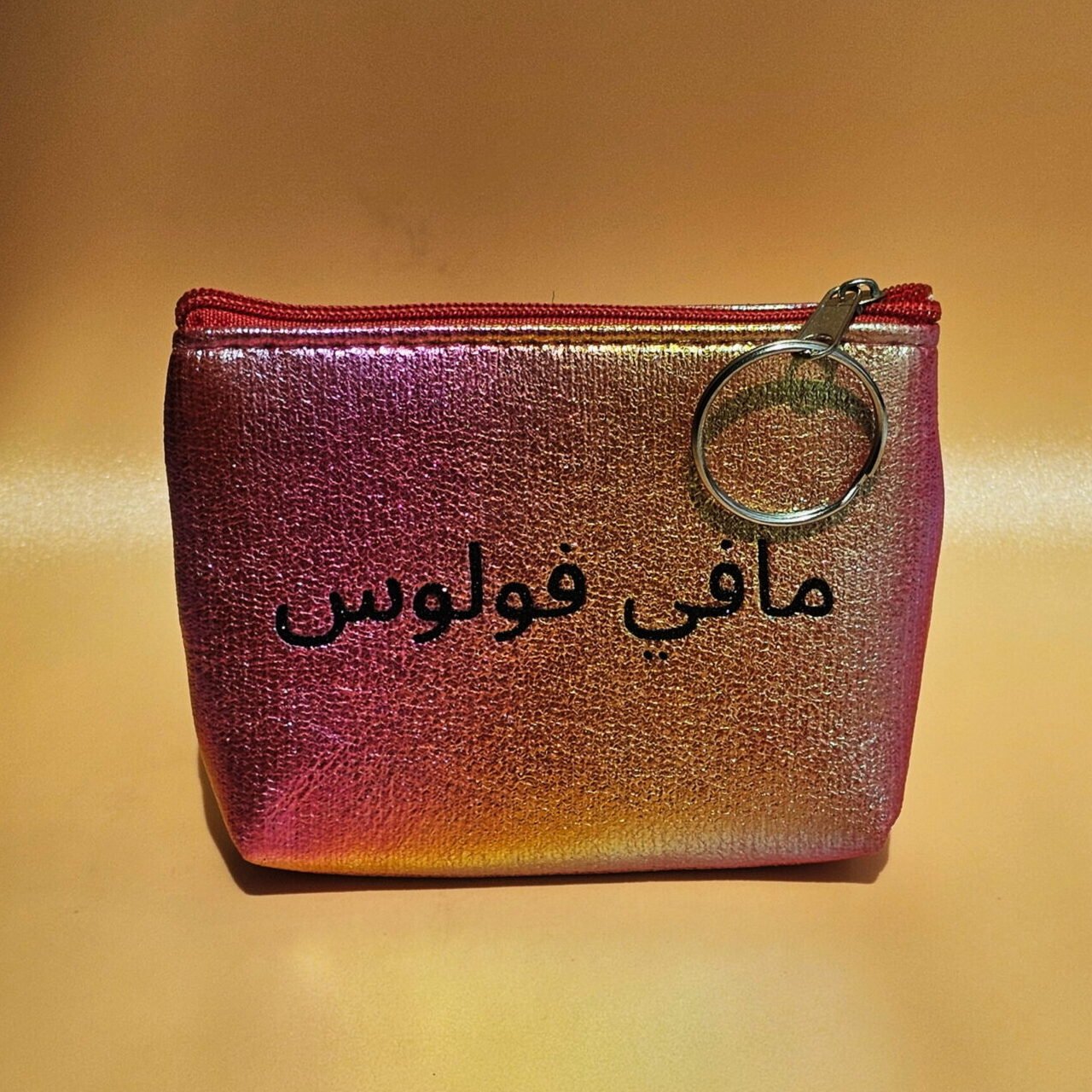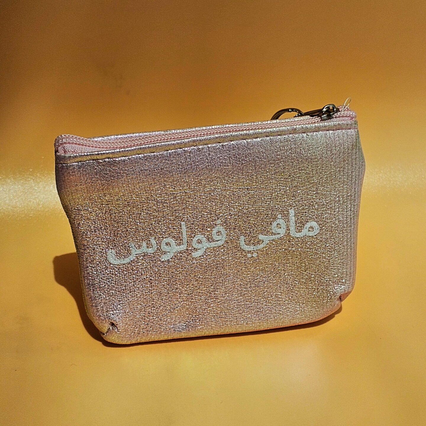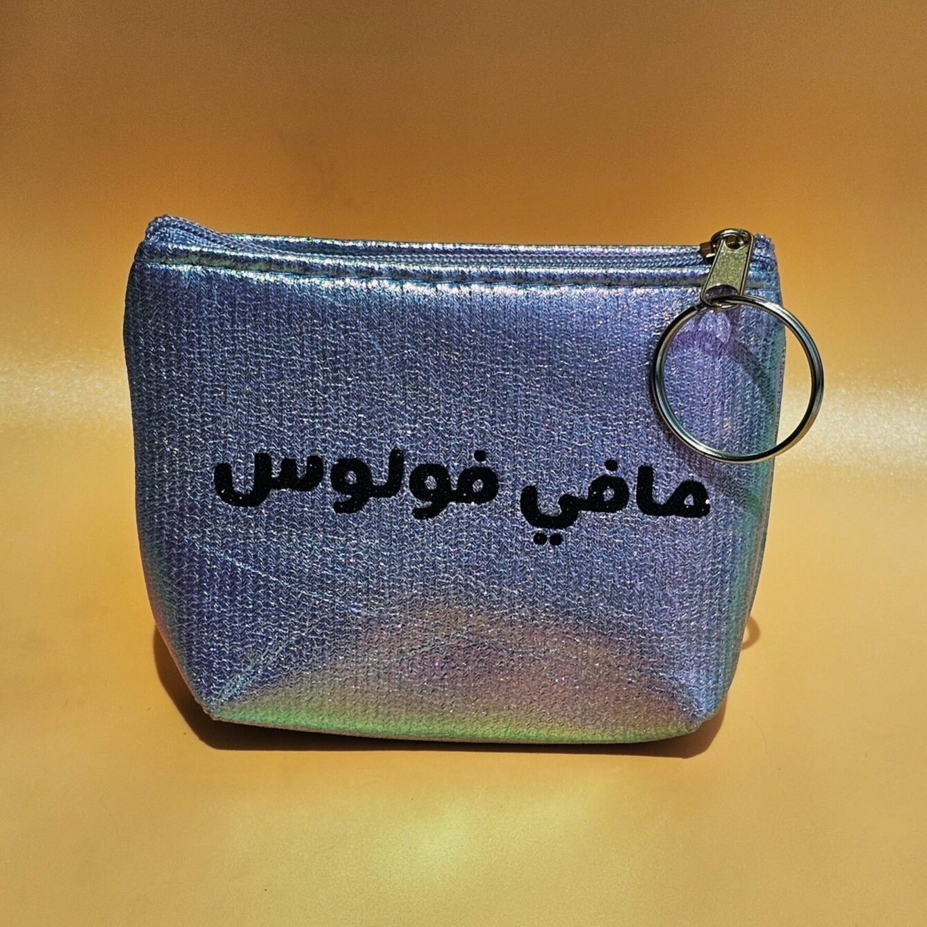 The design features the phrase “مافي فلوس” (Mafi Fulus), meaning “no money,” displayed in both Arabic and English.