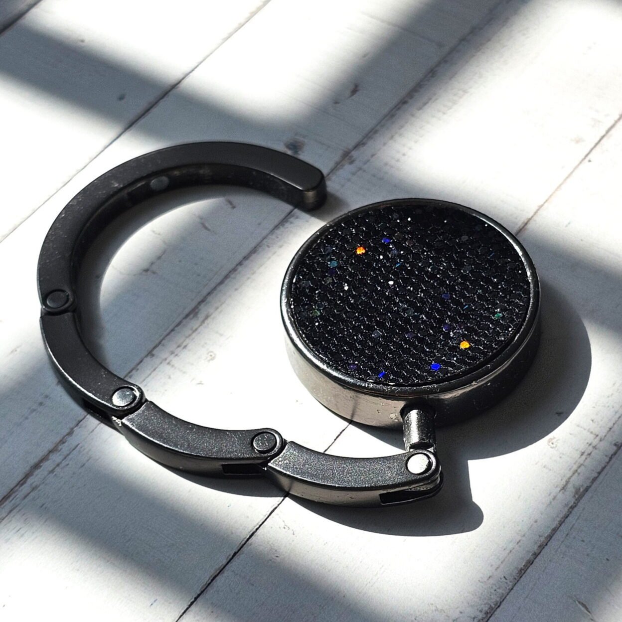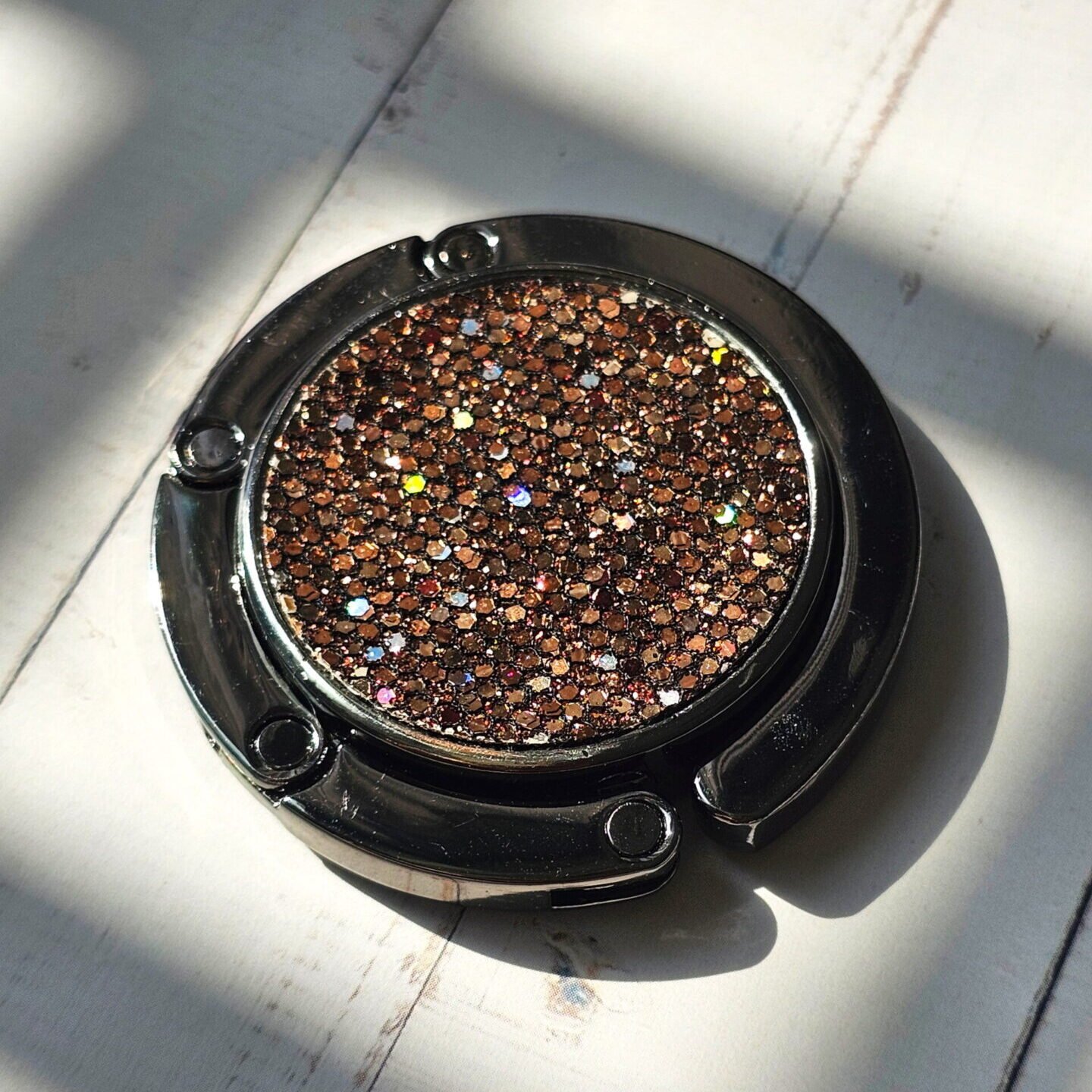 Add a touch of sparkle to your everyday with our Glitter Purse Hooks. Available in shimmering rose gold, bold black, and chic copper tones, these foldable handbag hooks combine functionality with eye-catching style.