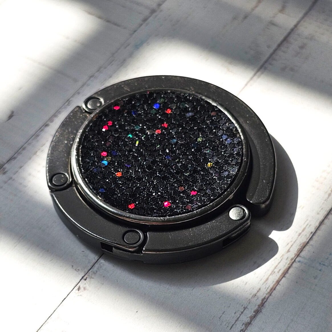 Compact and easy to carry, they keep your bag safely off the floor — whether you’re at a café, restaurant, or office. The glitter detail catches the light beautifully, turning a practical accessory into a statement piece.